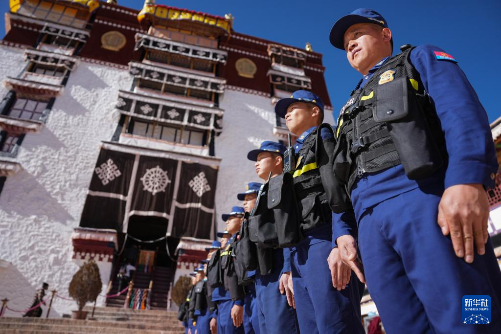 12月5日,布宮消防救援大隊指戰(zhàn)員在布達拉宮德央夏廣場巡邏。新華社記者 晉美多吉 攝