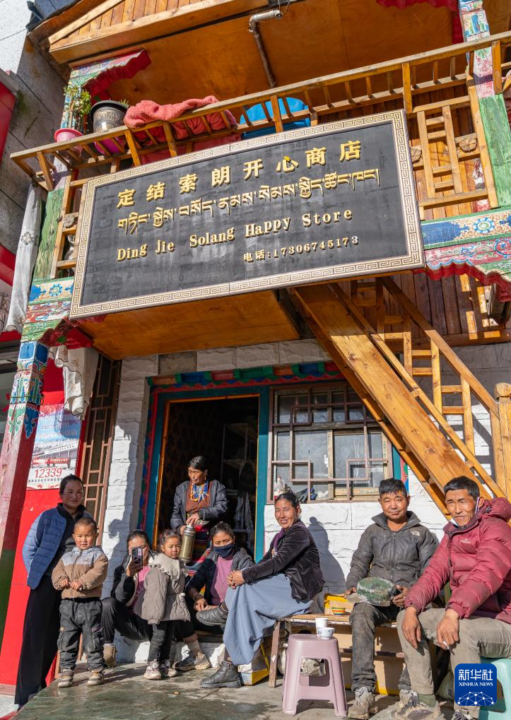 12月13日,陳塘鎮(zhèn)夏爾巴群眾坐在商店門口。