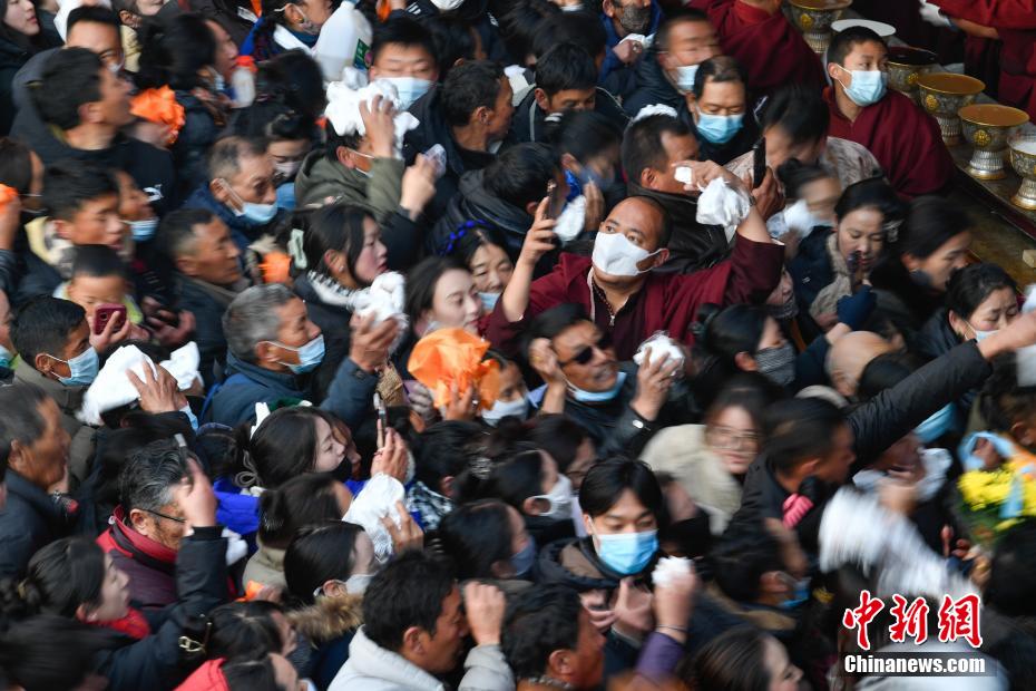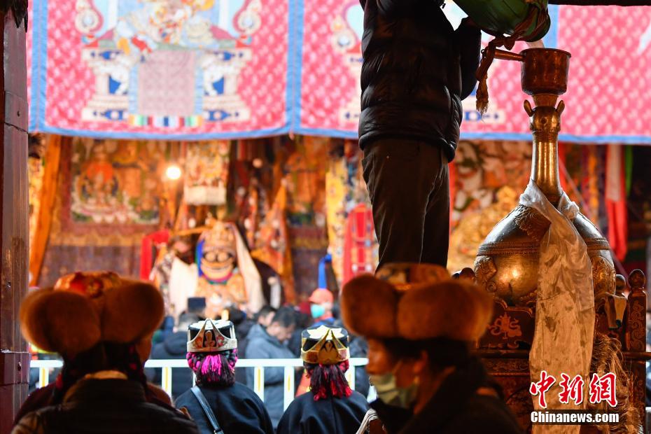 12月15日即藏歷十月十五日是藏族傳統(tǒng)的節(jié)日“白來(lái)日追”,俗稱(chēng)“仙女節(jié)”、“白拉姆節(jié)”等。相傳藏傳佛教最高護(hù)法神之一班丹拉姆的女兒白拉姆,不顧母親的反對(duì)與赤尊贊私定終身,班丹拉姆一怒之下將赤尊贊趕到拉薩河南岸,規(guī)定二人僅每年的藏歷十月十五日相見(jiàn)。圖為工作人員將青稞酒倒入女神白拉姆像前的酒壇。