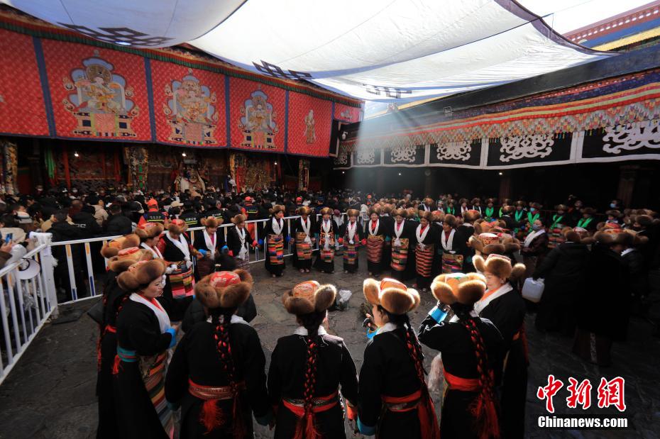 12月15日即藏歷十月十五日是藏族傳統(tǒng)的節(jié)日“白來(lái)日追”,俗稱(chēng)“仙女節(jié)”、“白拉姆節(jié)”等。相傳藏傳佛教最高護(hù)法神之一班丹拉姆的女兒白拉姆,不顧母親的反對(duì)與赤尊贊私定終身,班丹拉姆一怒之下將赤尊贊趕到拉薩河南岸,規(guī)定二人僅每年的藏歷十月十五日相見(jiàn)。圖為身著民族服裝的信眾在大昭寺內(nèi)載歌載舞。
