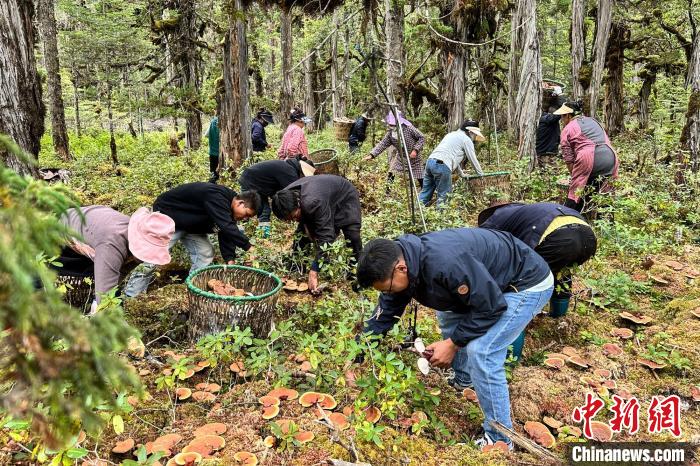資料圖為尼瑪家庭農(nóng)場(chǎng)帶動(dòng)周邊農(nóng)牧民在林間仿野生種植的靈芝進(jìn)入采摘期。受訪者 供圖
