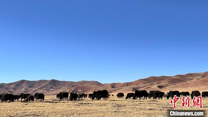 圖為散養(yǎng)牦牛在牧場(chǎng)悠閑吃草。謝牧 攝