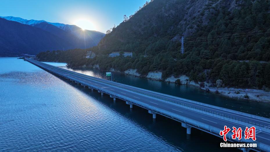 12月16日,航拍拉林高等級公路多布特大橋路段。連接西藏自治區(qū)首府拉薩和“雪域江南”林芝的拉林高等級公路在林芝市境內(nèi)的多布特大橋路段被譽為西藏“最美水上公路”,拉林高等級公路全長409.2公里,建在平均海拔3000多米的高原上,是世界上“顏值最高”的高等級公路之一。