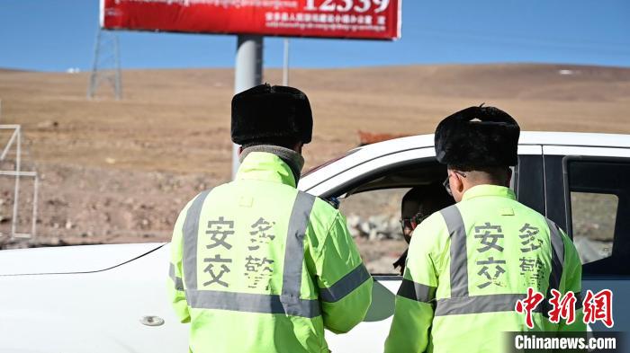 圖為安多縣公安局交通管理中心交警在唐古拉山口執(zhí)勤。 謝牧 攝