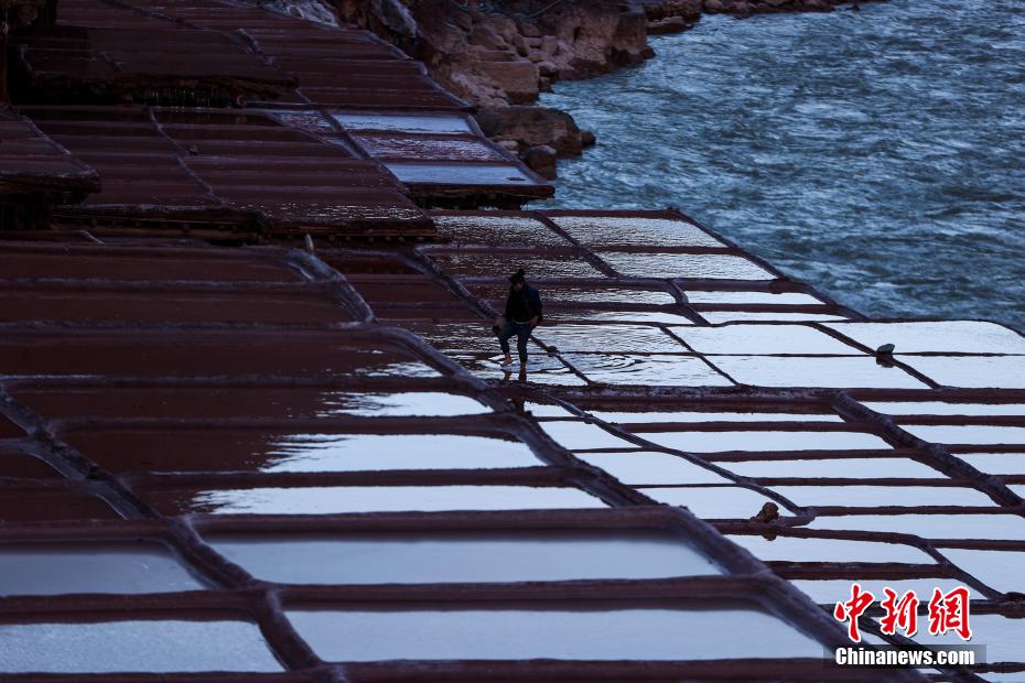 12月20日,在西藏自治區(qū)昌都市芒康縣,千年鹽田宛如大地的藝術(shù)畫(huà)卷。數(shù)千塊鹽田錯(cuò)落于瀾滄江畔,傳承千年曬鹽技藝。鹽民們遵循古老傳統(tǒng),引水曬鹽,白色鹽晶在陽(yáng)光下閃耀。這里不僅是鹽業(yè)生產(chǎn)地,更是文化瑰寶,見(jiàn)證歲月變遷,承載民族記憶。近年來(lái),其獨(dú)特景觀(guān)更是吸引眾多游客前來(lái)。圖為鹽工在鹽田中勞作。