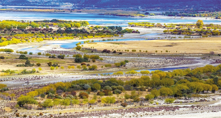 在雅尼國家濕地公園,記者見到來自廣西的游客蔡歡,“沒想到林芝有這么一片豐富濕地,令我驚喜,我要去濕地里拍越冬鳥類。”他說。與蔡歡不同的是,在爭相“打卡”留影的人群中,林芝市林芝鎮(zhèn)立定村村民白瑪喬也在拍照,與游客不同,她拍的是動物行蹤、植被狀況,防止非法盜捕、違規(guī)采砂。作為雅尼國家濕地公園管護(hù)員白瑪喬對雅尼濕地公園變化看在眼里。“簡而言之就是四個字——天翻地覆”。立定村靠近雅尼國家濕地公園。過去,這一帶植被稀疏,雨季過后,隨著水位下降,黃沙飛揚(yáng)?!扒囡锞驮谘沤?,忙活一會兒,頭發(fā)、鼻孔里都是沙子?!卑赚攩袒貞浀?。