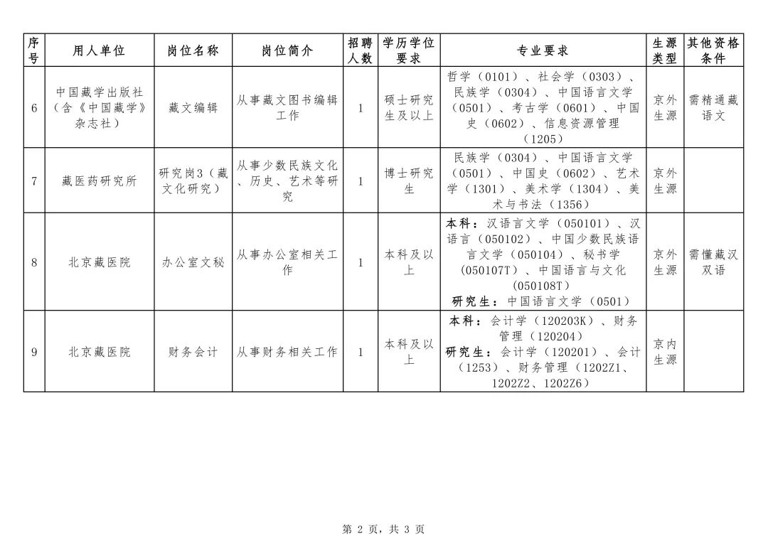附件:中國藏學(xué)研究中心所屬事業(yè)單位2025年度公開招聘應(yīng)屆高校畢業(yè)生崗位信息表