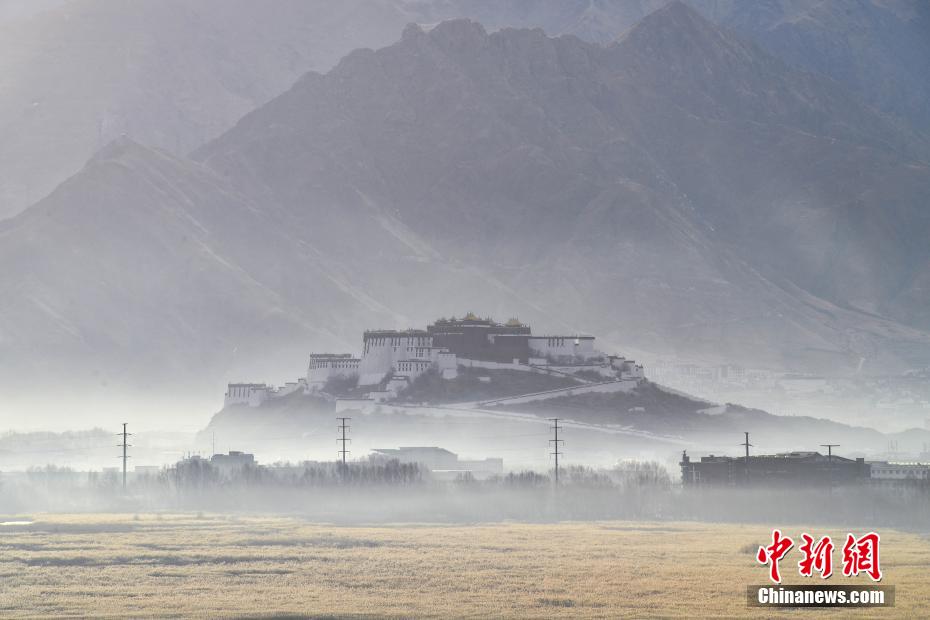 12月29日,冬日早晨,拉薩美如畫。拉薩河被晨光染成金色,河水靜靜流淌。西藏自治區(qū)拉薩市的拉魯濕地國家級自然保護區(qū)內,候鳥歡快,忙著覓食、嬉戲。遠處,布達拉宮與拉魯濕地相互映襯,構成了一幅絕美畫卷。圖為12月29日,晨霧中的布達拉宮。貢確 攝