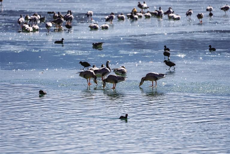 黑頸鶴,作為國(guó)家一級(jí)保護(hù)動(dòng)物,其數(shù)量的增加尤為令人欣喜。它們身姿優(yōu)雅,在濕地中翩翩起舞,宛如大自然的精靈。而斑頭雁和赤麻鴨也成群結(jié)隊(duì)地在水中暢游,歡快的叫聲回蕩在空中,為濕地增添了無(wú)限的生機(jī)與活力。