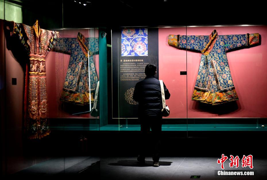 以“見證與守望——鑄牢中華民族共同體意識主題展”為主題的展覽近日亮相西藏自治區(qū)拉薩市布達(dá)拉宮雪城珍寶館。本次主題展精選100余件文物珍品,展覽通過文物、古籍及布達(dá)拉宮的傳承與發(fā)展,講述各民族交往交流交融的故事。圖為1月2日,觀眾欣賞展覽中的清代藍(lán)地纏枝蓮紋鑲貂皮袍。中新社記者 李林 攝