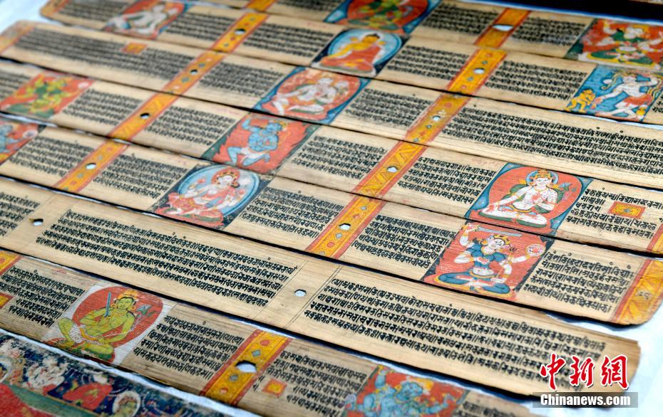 以“見證與守望——鑄牢中華民族共同體意識主題展”為主題的展覽近日亮相西藏自治區(qū)拉薩市布達(dá)拉宮雪城珍寶館。本次主題展精選100余件文物珍品,展覽通過文物、古籍及布達(dá)拉宮的傳承與發(fā)展,講述各民族交往交流交融的故事。圖為1月2日,展覽中的13世紀(jì)《般若八千頌》貝葉經(jīng)寫本。中新社記者 李林 攝