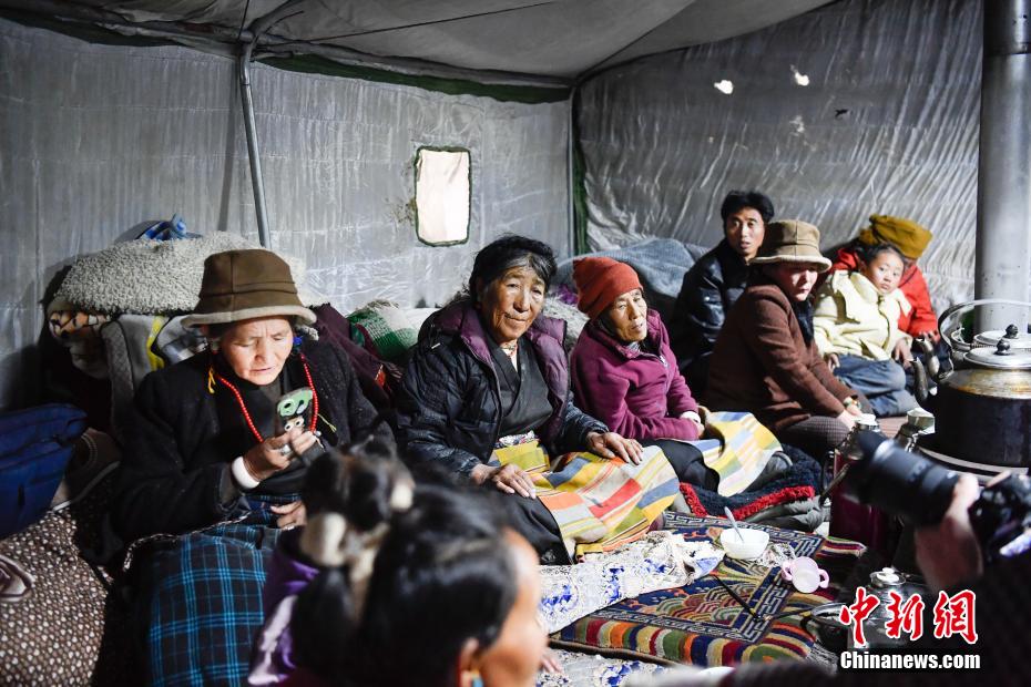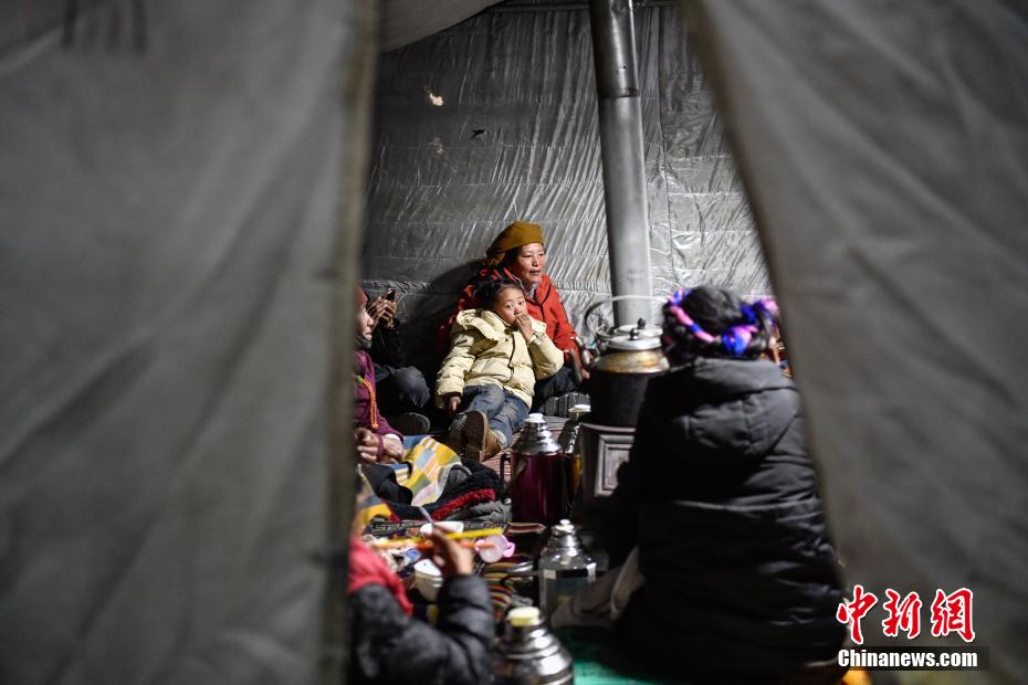 1月7日9時5分,西藏自治區(qū)日喀則市定日縣措果鄉(xiāng)附近(東經(jīng)87.45度,北緯28.50度)發(fā)生6.8級地震。日喀則市官方介紹,經(jīng)初步排查,截至當日15時,地震共造成95人遇難,130人受傷,房屋損毀正在統(tǒng)計中。圖為日喀則拉孜縣境內(nèi)的村民在臨時搭建的帳篷里準備過夜。中新社記者 貢桑拉姆 攝