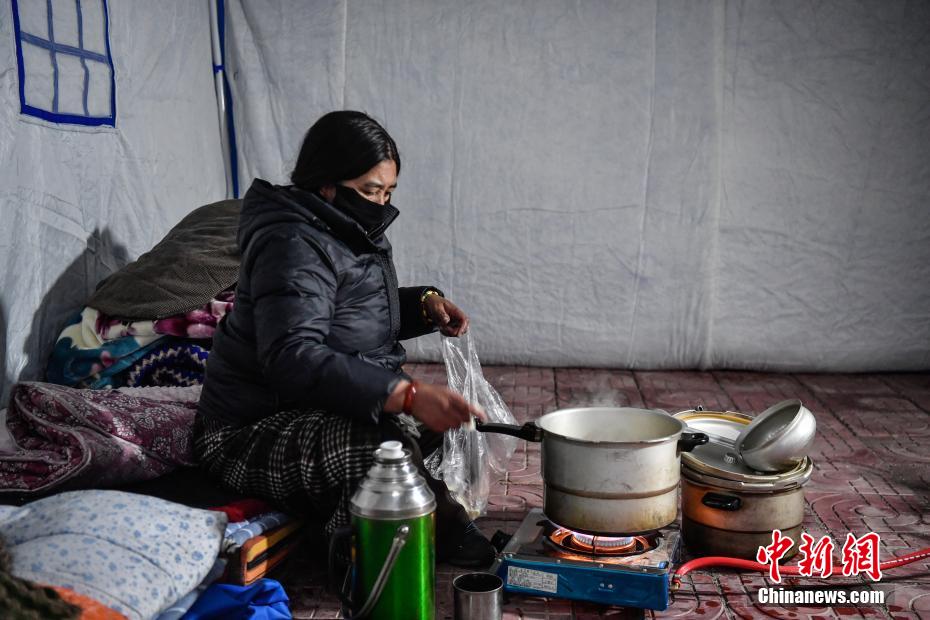 1月7日9時5分,西藏自治區(qū)日喀則市定日縣措果鄉(xiāng)附近(東經(jīng)87.45度,北緯28.50度)發(fā)生6.8級地震。日喀則市官方介紹,經(jīng)初步排查,截至當日15時,地震共造成95人遇難,130人受傷,房屋損毀正在統(tǒng)計中。圖為日喀則拉孜縣境內(nèi)的村民在臨時搭建的帳篷里做飯。中新社記者 貢嘎來松 攝
