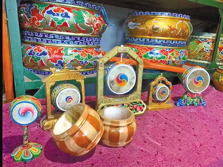 貢覺頓珠制作的各種鼓。