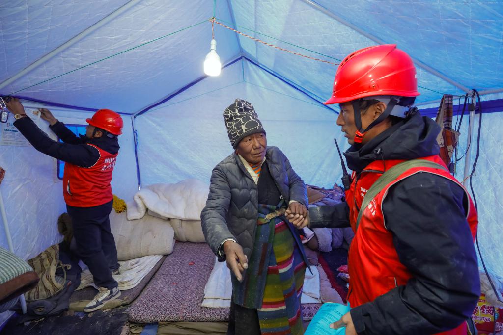 塘仁村63歲村民桑杰卓瑪家的三間帳篷搭建在自家震損房屋旁邊的草地里,國家電網(wǎng)搶險(xiǎn)救援人員為她從市電主線接通入戶。“這下能檢查的項(xiàng)目更全了。”現(xiàn)場攜帶電子儀器、準(zhǔn)備為桑杰卓瑪一家進(jìn)行入戶體檢的醫(yī)療保障人員說。