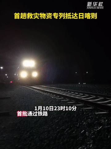 1月10日23時(shí)10分,首批通過鐵路運(yùn)輸?shù)目拐鹁葹?zāi)物資搭載95001次專列順利抵達(dá)西藏自治區(qū)日喀則西站。
