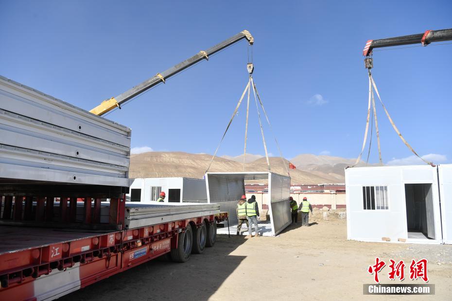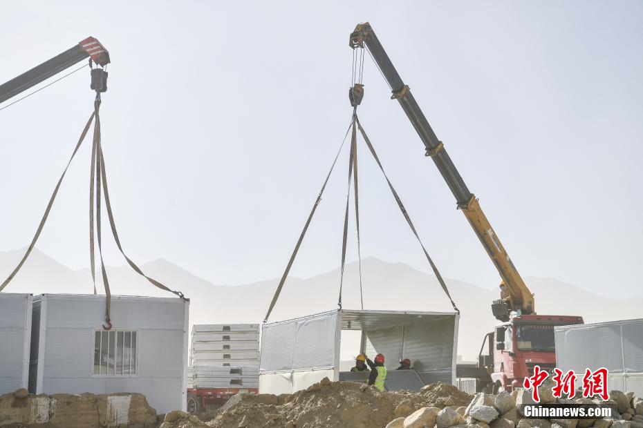 1月7日9時(shí)5分,西藏自治區(qū)日喀則市定日縣發(fā)生6.8級(jí)地震,震源深度10公里。災(zāi)情就是命令,當(dāng)?shù)卣推髽I(yè)迅速行動(dòng),目前災(zāi)區(qū)多個(gè)鄉(xiāng)村都在加緊進(jìn)行保溫板房建設(shè),只為讓受災(zāi)民眾早日擁有“安心巢”。據(jù)了解,每間板房有18平方米,可容納4到5人,板房設(shè)有折疊床、桌子、爐子等,并保障民眾用電需求,讓他們更好地度過冬天。圖為1月10日,西藏日喀則市定日縣措果鄉(xiāng)嘎熱果吉村保溫板房建設(shè)現(xiàn)場。中新社記者 貢嘎來松 攝