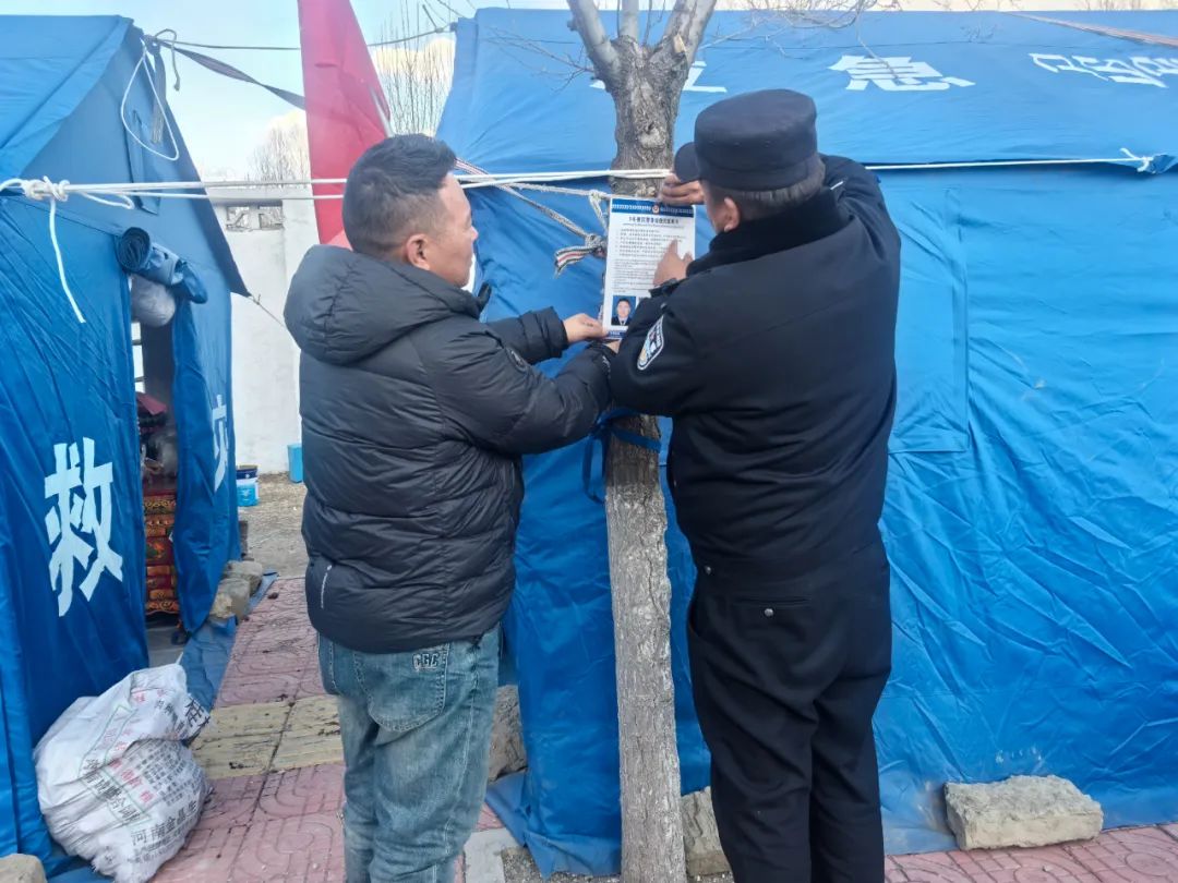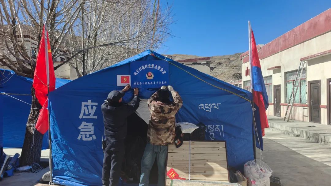 災(zāi)情如令,責(zé)任重于泰山。在這場(chǎng)爭(zhēng)分奪秒與時(shí)間賽跑的抗震救災(zāi)戰(zhàn)斗中,拉孜公安始終堅(jiān)定地與群眾并肩同行,以“伴隨式”守護(hù)的帳篷警務(wù)室,為受災(zāi)群眾筑牢安全防線。一頂頂 “帳篷警務(wù)室” 以迅雷不及掩耳之勢(shì)搭建完成,恰似一座座堅(jiān)固的堡壘;一面面鮮艷的黨旗在廢墟之上獵獵作響,傲然飄揚(yáng),它們共同構(gòu)成了守護(hù)受災(zāi)群眾生命財(cái)產(chǎn)安全的鋼鐵長(zhǎng)城,成為抗震救災(zāi)戰(zhàn)場(chǎng)上一道令人動(dòng)容的亮麗風(fēng)景線 。