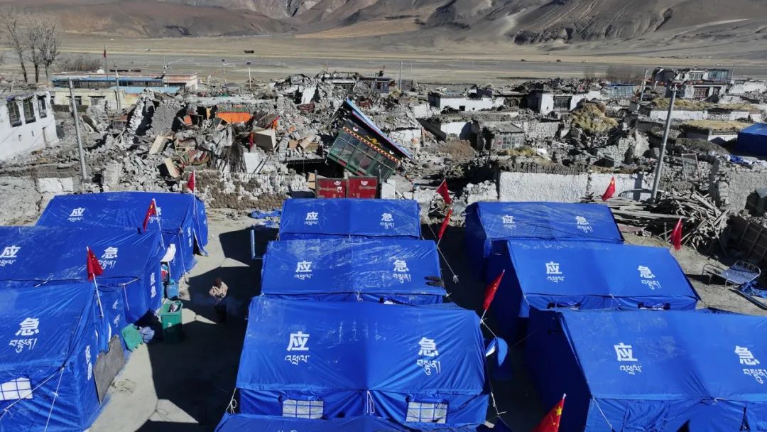 圖為在日喀則市定日縣長所鄉(xiāng)嘎布村安置點(diǎn),日喀則邊境管理支隊嘎布村“帳篷警務(wù)室”民警幫助群眾卸載救災(zāi)物資。貢嘎齊平 攝