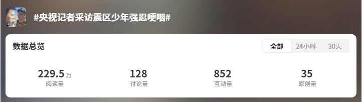詞條#央視記者采訪震區(qū)少年強(qiáng)忍哽咽#