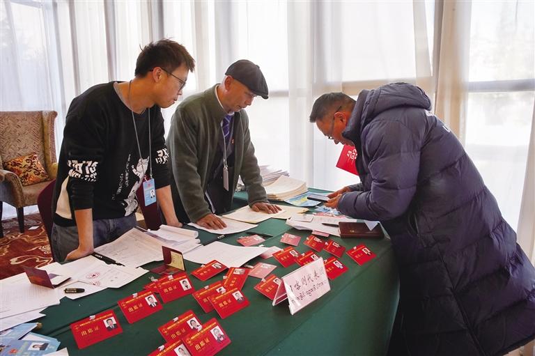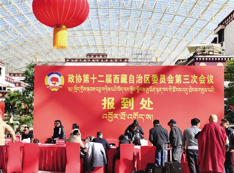 1月16日,參加自治區(qū)政協(xié)十二屆三次會(huì)議的委員向大會(huì)報(bào)到。記者 貢曲羅杰 攝