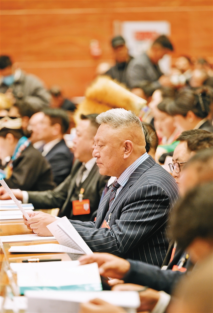 林芝市代表團(tuán)審議政府工作報告。記者 次仁平措 攝
