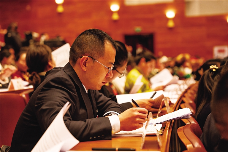 會議現(xiàn)場,一組組數(shù)據(jù)彰顯發(fā)展成果、一個個成績令人備受鼓舞、一項項政策聚焦民生福祉、一個個舉措激發(fā)奮斗熱情。代表委員們?nèi)褙炞Ⅰ雎犝ぷ鲌蟾?,臺上報告擲地有聲、振奮人心,描繪著西藏發(fā)展的美好前景;臺下代表委員們認真傾聽、精神抖擻,展現(xiàn)出積極參與會議、共促發(fā)展的熱忱。手中的政府工作報告承載著過去一年的努力與收獲,代表委員們目光堅定,眼神中滿是對過往成績的認可和對未來發(fā)展的殷切期望。