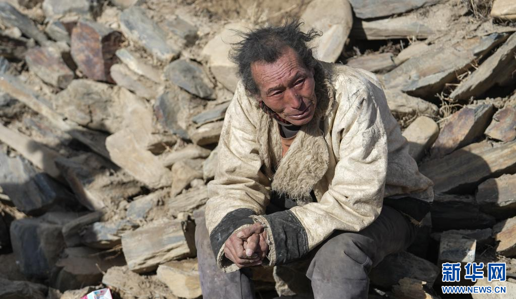 1月7日,古榮村的受災(zāi)群眾在已成廢墟的家門(mén)口哭泣。新華社記者 晉美多吉 攝