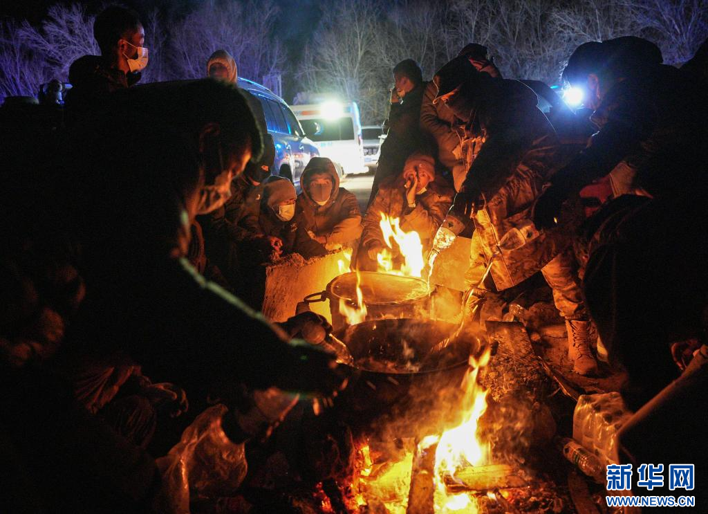 1月7日晚,長(zhǎng)所鄉(xiāng)集中安置點(diǎn)的受災(zāi)群眾在煮水準(zhǔn)備泡方便面。新華社記者 晉美多吉 攝