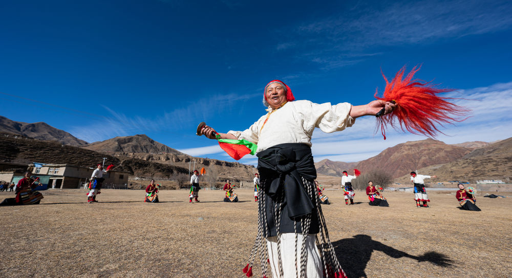 新年伊始,在西藏昌都市丁青縣尺犢鎮(zhèn)的草壩上,烏巴村文藝演出隊(duì)正在熱火朝天地排練。盡管寒風(fēng)凜冽,但激昂的鼓點(diǎn)和熱烈的音樂(lè),讓這片土地充滿(mǎn)了生機(jī)與活力。