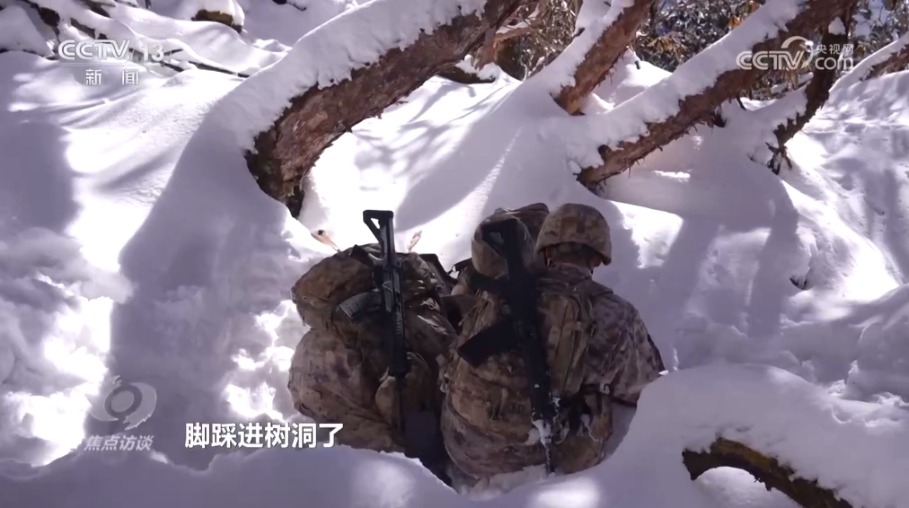 西藏軍區(qū)“墨脫戍邊模范營”某連崔中駿:“一開始聽班長講,我以為比較夸張。但是實際上自己體驗了之后,確實挺累的,路也比較難走,坡比較陡,雪也比較厚,挺滑的,走著走著還容易陷到樹洞里面?!?/p>