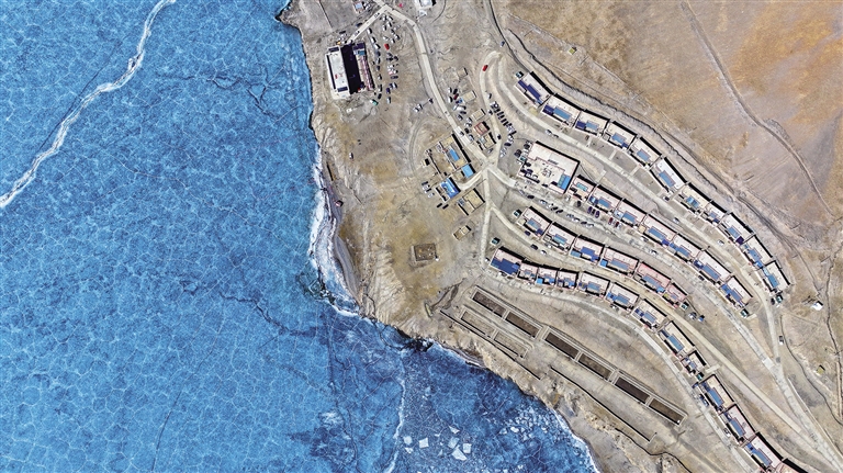 當(dāng)日,天空晴朗,在廣袤無垠、無樹木遮擋的曠野上,稍起一陣疾風(fēng),便會揚起一層薄薄的黃沙。從村委會出發(fā),沿著冰湖畔的水泥小路前行,很快就來到了村民倫珠曲珍的家。一進(jìn)屋,厚實的木門便將凜冽的寒風(fēng)擋在了門外?!翱煺堖M(jìn),這幾天風(fēng)沙有點大,普莫雍措都沒以前藍(lán)了?!眰愔榍湟贿呹P(guān)門一邊熱情地笑著說道。