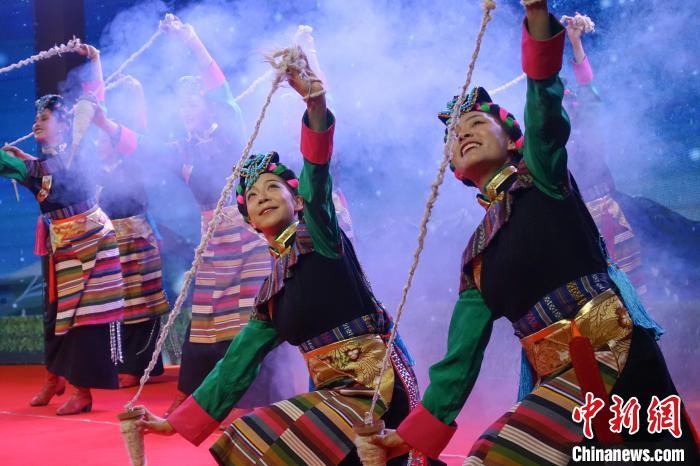2月18日晚,中國(guó)駐尼泊爾使館在加德滿都舉辦藏歷木蛇新年招待會(huì)。圖為中國(guó)西藏山南市藝術(shù)團(tuán)表演舞蹈《織夢(mèng)》。中新社記者 崔楠 攝
