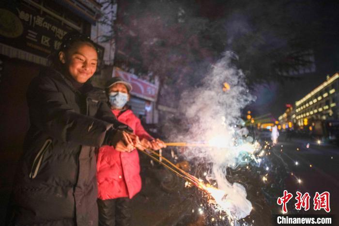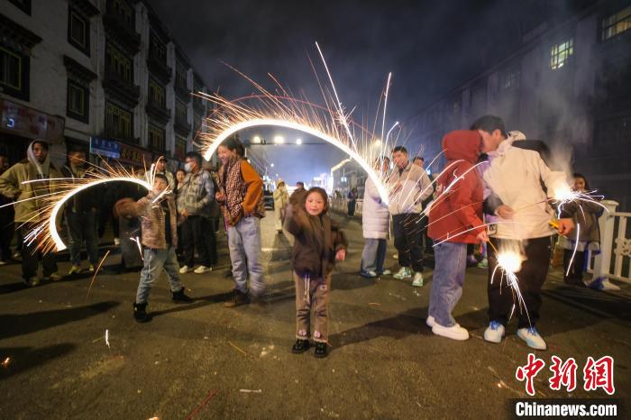 藏歷新年是西藏傳統(tǒng)民俗活動,也是中國國家級非物質(zhì)文化遺產(chǎn)。2月27日,西藏迎來一年一度的藏歷新年古突夜(類似春節(jié)的除夕),如今過古突夜,西藏民眾在點(diǎn)燃火把的同時(shí),也會燃放煙花,古城拉薩煙花璀璨。圖為2月27日晚,孩子們在拉薩街頭燃放煙花,慶祝藏歷新年的到來。中新社記者 江飛波 攝