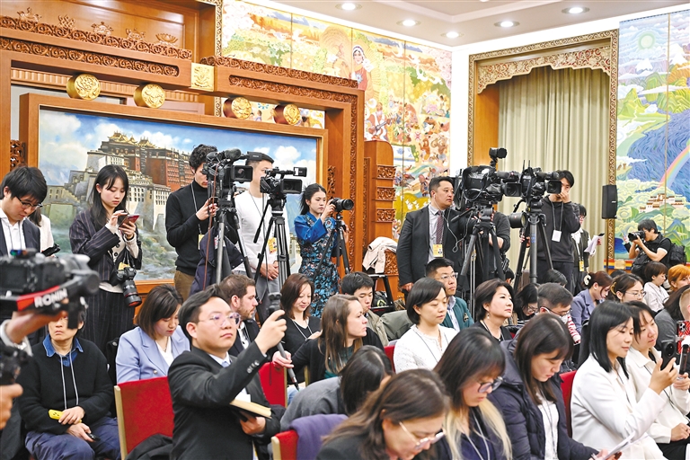 3月6日上午,十四屆全國人大三次會議西藏代表團(tuán)舉行開放團(tuán)組活動。這是活動現(xiàn)場。