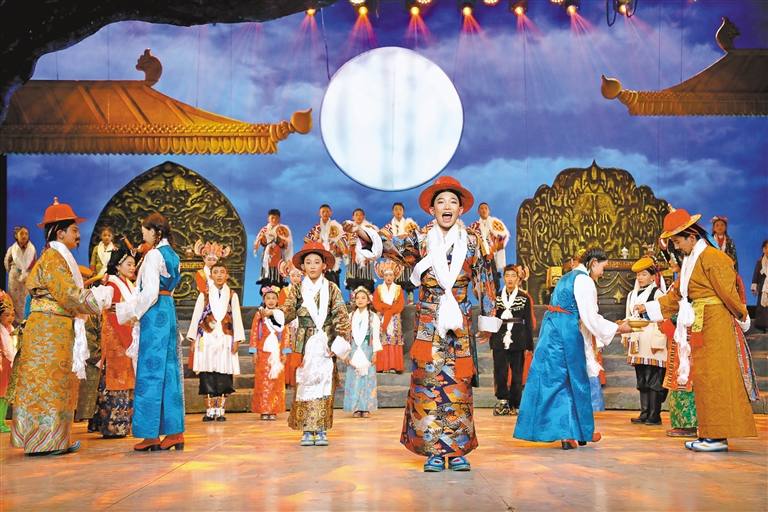 2023年雪頓節(jié)期間,少兒舞臺劇藏戲《頓月頓珠》終于與觀眾見面,贏得一致好評。云登羅布記得,第一次首演成功后,所有主創(chuàng)和指導(dǎo)老師在現(xiàn)場激動得哭了:“我們做到了!”