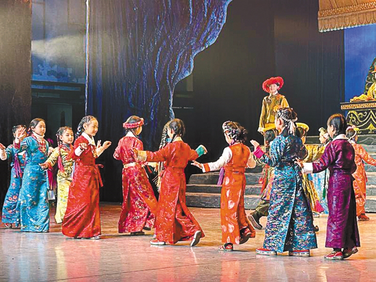 用少兒舞臺劇藏戲《頓月頓珠》導(dǎo)演之一云登羅布的話說:“從最初的‘摸著石頭過河’,到2023年雪頓節(jié)首演大獲成功,再到如今公演,主創(chuàng)團(tuán)隊(duì)對孩子們的要求再度提升——要在表演細(xì)節(jié)上做功課,在舞臺上真唱真說真情表演。他們都做到了,他們是了不起的!”