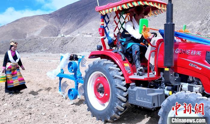 3月16日,唐加鄉(xiāng)沖尼村村民用拖拉機(jī)耕地。拉巴卓瑪 攝