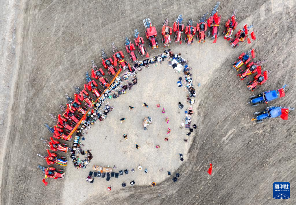 西藏拉薩市林周縣強嘎鄉(xiāng)春耕典禮現場(3月16日攝,無人機照片)。新華社記者 晉美多吉 攝
