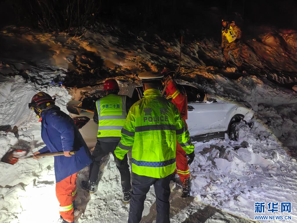 此時(shí),積雪最深處超過3米,寒風(fēng)刺骨,救援刻不容緩。20時(shí)15分,距離事發(fā)地200米的國道318線(然烏段)整治改建工程特長隧道——然烏隧道進(jìn)口處,正在施工的中鐵二十局建設(shè)者最先發(fā)現(xiàn)災(zāi)情。8名建設(shè)者便攜帶救援繩、鐵鍬、防寒服等物資登車,與1臺(tái)重型裝載機(jī)趕到現(xiàn)場(chǎng)。與此同時(shí),八宿縣消防救援、公安及武警官兵及時(shí)趕到現(xiàn)場(chǎng)緊急馳援。在零下10攝氏度左右的嚴(yán)寒中,各方救援力量頂風(fēng)冒雪,爭分奪秒展開了一場(chǎng)與時(shí)間賽跑的救援。