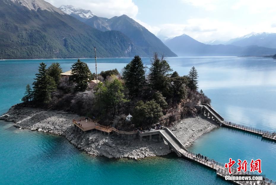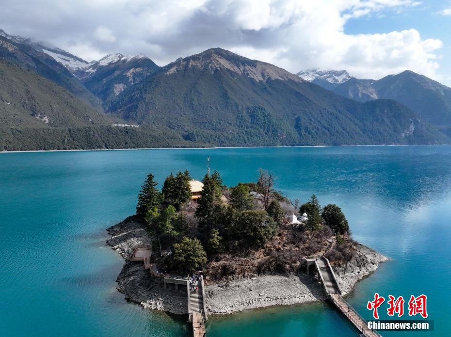 3月30日,航拍巴松措湖心島。巴松措又名錯高湖,位于西藏自治區(qū)林芝市工布江達縣,是西藏首個自然風(fēng)景類國家5A級旅游風(fēng)景區(qū)。從空中俯瞰巴松措,碧藍的湖水被雪山、森林環(huán)繞,宛如鑲嵌在群山間的“藍寶石”。(無人機照片)中新社記者 馬銘言 攝