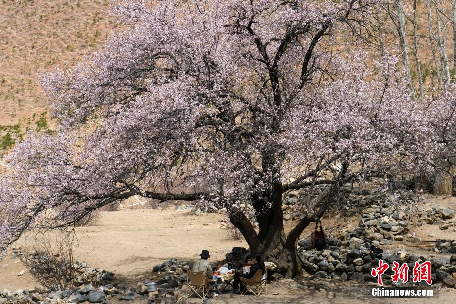 3月下旬,高原已是一片春意。西藏拉薩市區(qū)拉薩河南岸慈覺林的古桃樹進入盛花期,3月30日恰逢周末,不少市民游客前往賞花“打卡”,在桃樹下野餐等,享受高原春日風光。圖為3月30日,民眾在拉薩慈覺林桃樹下野餐,享受悠閑時光。江飛波 攝