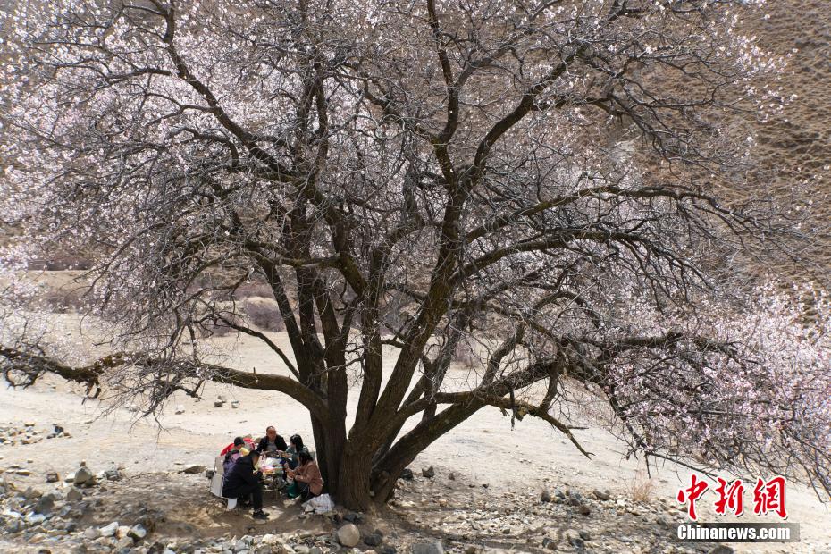 3月下旬,高原已是一片春意。西藏拉薩市區(qū)拉薩河南岸慈覺林的古桃樹進入盛花期,3月30日恰逢周末,不少市民游客前往賞花“打卡”,在桃樹下野餐等,享受高原春日風光。圖為3月30日,民眾在拉薩慈覺林桃花樹下野餐。江飛波 攝