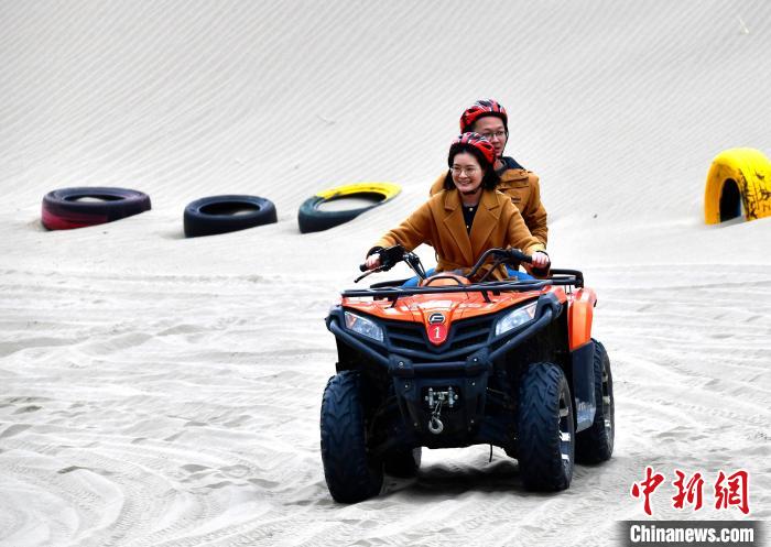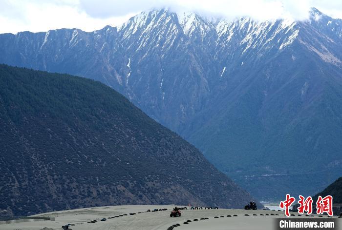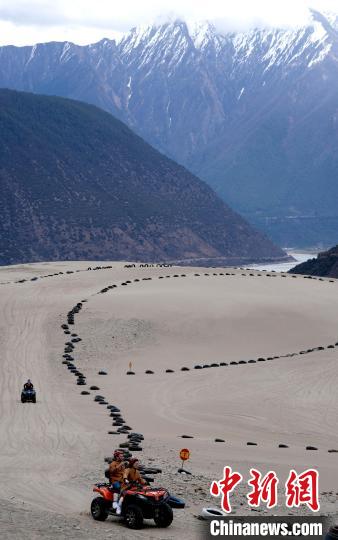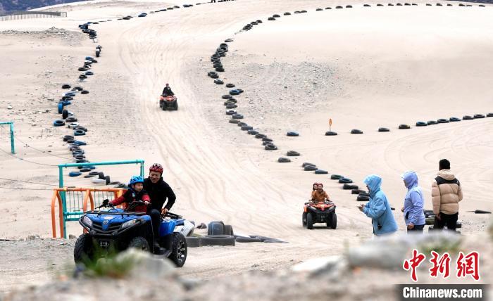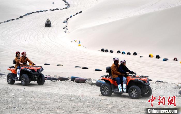 4月4日,游客在西藏米林市丹娘佛掌沙丘景點體驗沙灘車。當(dāng)日是清明假期第一天,眾多游客在該地游玩,樂享美好春光。丹娘佛掌沙丘位于米林市丹娘鄉(xiāng),因沙丘倒影在雅魯藏布江中形成雙手合十的形狀,故被譽(yù)為佛掌沙丘。中新社記者 李林 攝