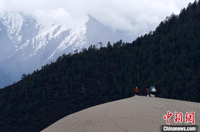 4月4日,游客在西藏米林市丹娘佛掌沙丘景點觀景。當(dāng)日是清明假期第一天,眾多游客在該地游玩,樂享美好春光。丹娘佛掌沙丘位于米林市丹娘鄉(xiāng),因沙丘倒影在雅魯藏布江中形成雙手合十的形狀,故被譽(yù)為佛掌沙丘。中新社記者 李林 攝