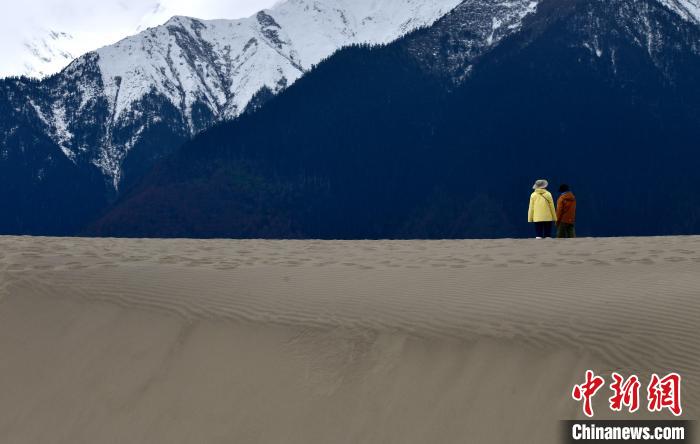 4月4日,游客在西藏米林市丹娘佛掌沙丘景點觀賞。當(dāng)日是清明假期第一天,眾多游客在該地游玩,樂享美好春光。丹娘佛掌沙丘位于米林市丹娘鄉(xiāng),因沙丘倒影在雅魯藏布江中形成雙手合十的形狀,故被譽(yù)為佛掌沙丘。中新社記者 李林 攝