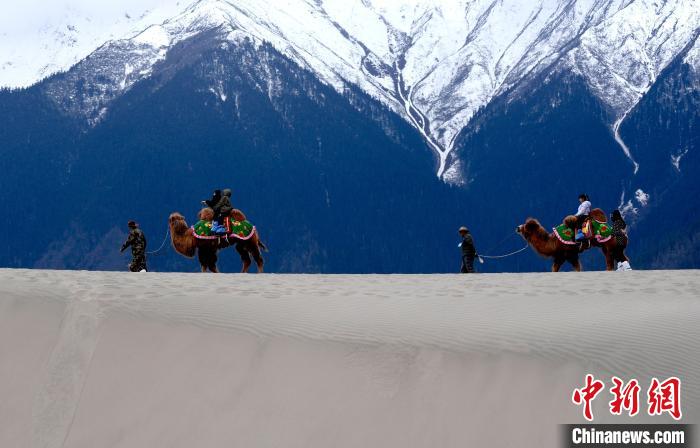 4月4日,游客在西藏米林市丹娘佛掌沙丘景點體驗騎駱駝。當(dāng)日是清明假期第一天,眾多游客在該地游玩,樂享美好春光。丹娘佛掌沙丘位于米林市丹娘鄉(xiāng),因沙丘倒影在雅魯藏布江中形成雙手合十的形狀,故被譽(yù)為佛掌沙丘。中新社記者 李林 攝