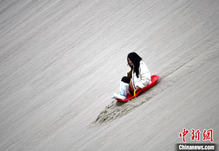 4月4日,游客在西藏米林市丹娘佛掌沙丘景點體驗滑沙。當(dāng)日是清明假期第一天,眾多游客在該地游玩,樂享美好春光。丹娘佛掌沙丘位于米林市丹娘鄉(xiāng),因沙丘倒影在雅魯藏布江中形成雙手合十的形狀,故被譽(yù)為佛掌沙丘。中新社記者 李林 攝