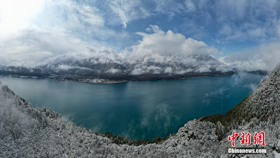 巴松錯位于西藏林芝工布江達縣境內(nèi),地處巴河上游的高山峽谷中,是西藏首個自然風景類國家5A級旅游景區(qū)。4月5日,巴松錯迎來一場春雪,雪后四周原始森林猶如蒙上潔白面紗,湖面宛如一面藍寶石鑲嵌其中,風光如畫。圖為4月5日,巴松錯與四周的原始森林和雪山風光。中新社記者 江飛波 攝