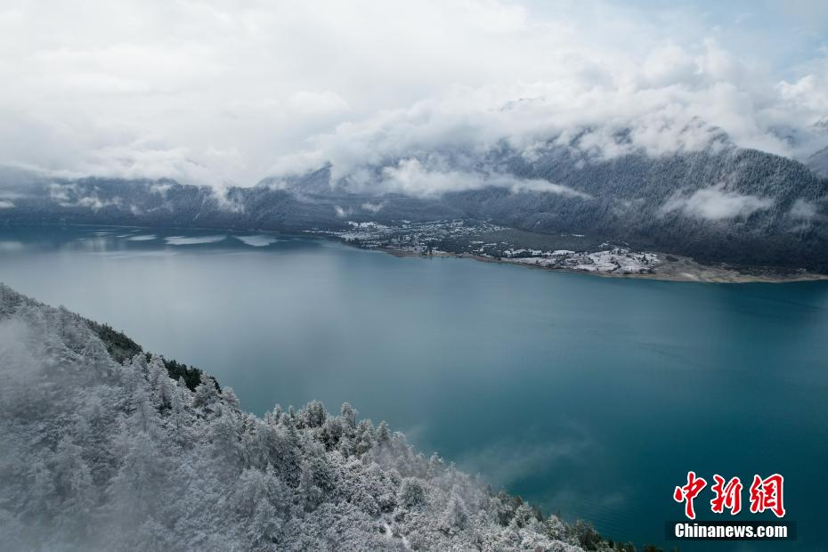 巴松錯位于西藏林芝工布江達縣境內(nèi),地處巴河上游的高山峽谷中,是西藏首個自然風景類國家5A級旅游景區(qū)。4月5日,巴松錯迎來一場春雪,雪后四周原始森林猶如蒙上潔白面紗,湖面宛如一面藍寶石鑲嵌其中,風光如畫。圖為4月5日,春雪后的巴松錯風光。(無人機畫面)中新社記者 江飛波 攝